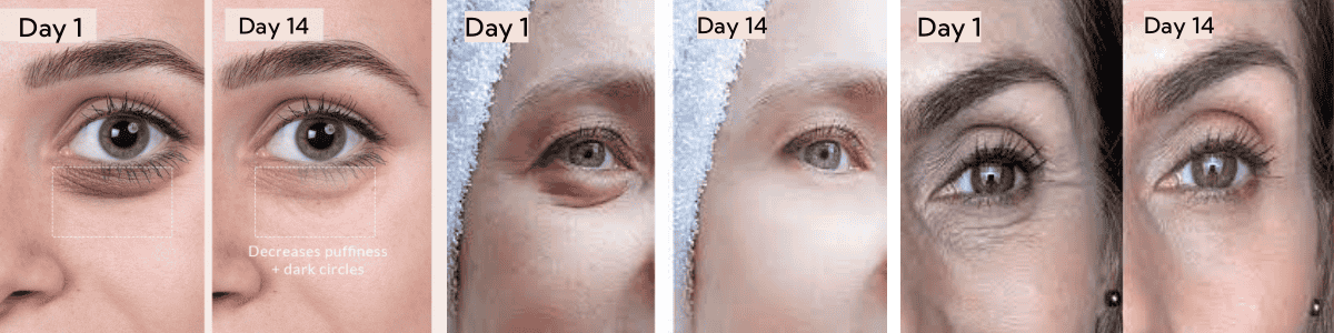 10 minutes a day for several weeks to Firm and refine puffy under-eye bags; Diminish dark circles and brighten tired eyes; Visibly reduce fine lines and wrinkles. Gentle and safe for all skin types